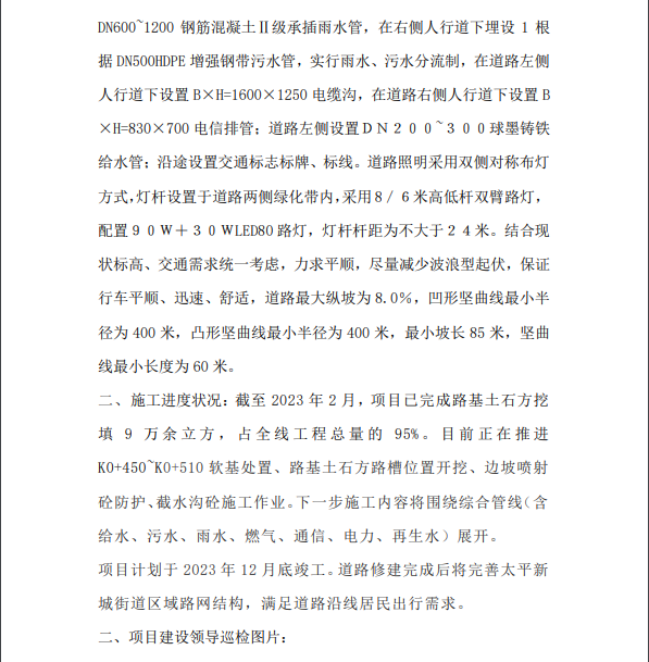 太平新城財經(jīng)大學配套2號支路工程3月份項目進展情況