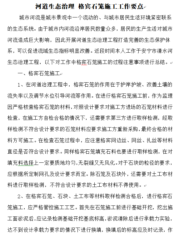 河道生態(tài)治理 格賓石籠施工工作要點