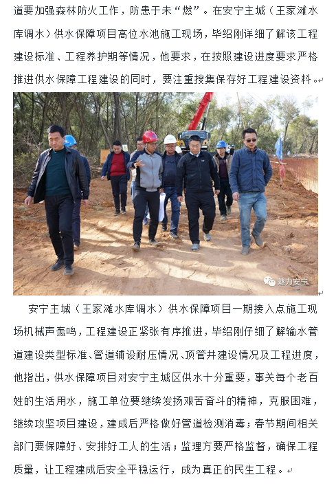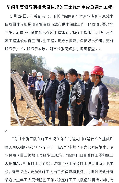畢紹剛等領(lǐng)導(dǎo)調(diào)研我司監(jiān)理的王家灘水庫應(yīng)急調(diào)水工程