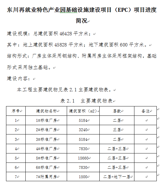 東川再就業(yè)特色產(chǎn)業(yè)園基礎設施建設項目(EPC)項目進度簡況