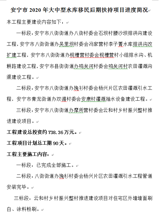 安寧市2020年大中型水庫(kù)移民后期扶持項(xiàng)目進(jìn)度簡(jiǎn)況